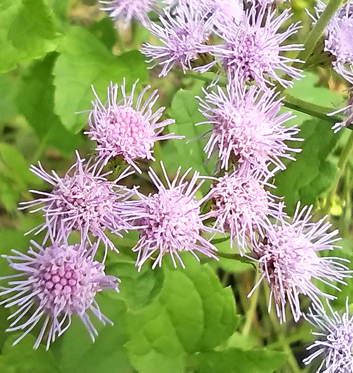 Mistflower (Conoclinium coelestinum) is an eye-catching wildflower that blooms during late summer into fall. Its clusters of sky-blue flowers attract many pollinators, especially butterflies, moths, and long-tongued bees. Found naturally along wood edges, stream banks, moist meadows, and roadside ditches, this native perennial grows 1-3’ tall. Mistflower is known by many common names including blue mistflower, wild ageratum, pink eupatorium, hardy ageratum, and blue boneset. It should not be confused with the smaller, non-native, annual ageratum (Ageratum conyzoides) sold as a bedding plant for flower gardens. Mistflower is perfect for a wildflower garden in a moist, partially shaded setting. It is blooming now along the north edge of the woodlands and swale at Sopchoppy Depot Park.