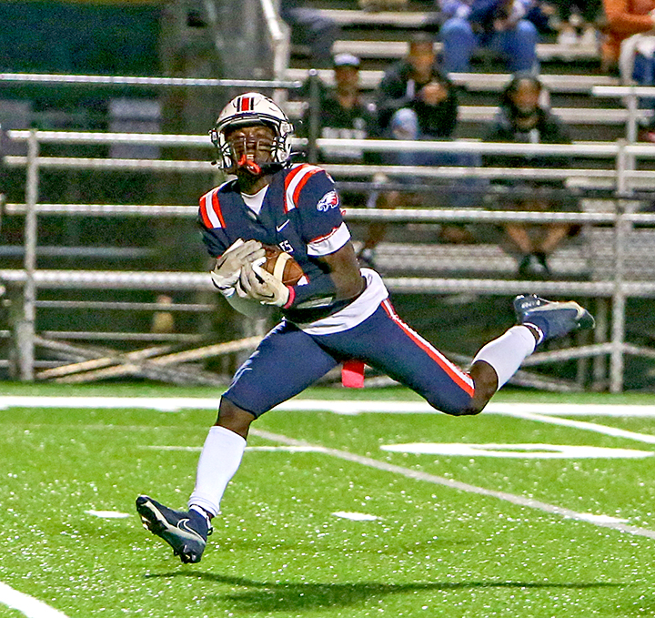 War Eagle receiver Samron Brinson hauls in a 45-yard long pass for a touchdown against North Florida Christian. PHOTOS BY KEN FIELDS