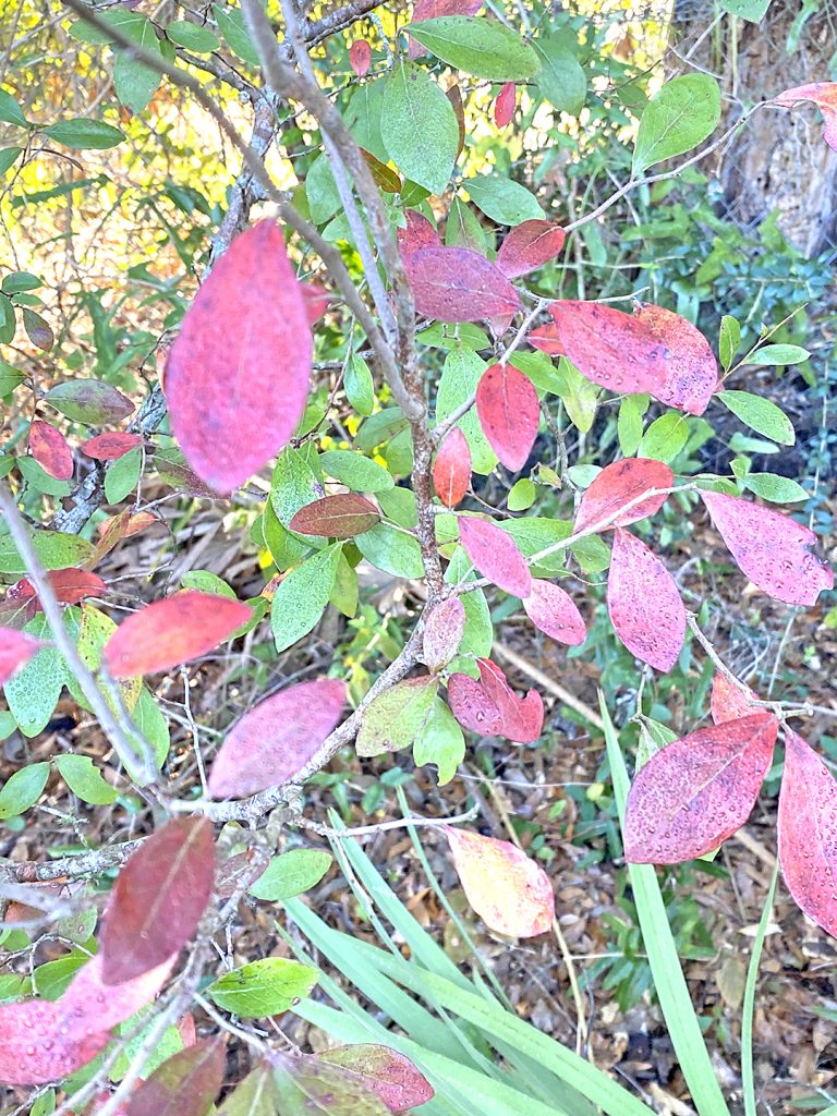 Sparkleberry (Vaccinium arboreum) is a lovely semi-evergreen large shrub or small tree with year-round beauty. In spring, many 2–3-inch clusters of showy white bell-shaped flowers dangle for weeks and attract pollinators. Shiny black berries feed wildlife. Small oval leaves turn burgundy in fall and persist. Attractive flaking bark reveals reddish color beneath. Sparkleberry grows 10-25’ tall and 4-10’ wide in sandy soil and prefers part shade. Also called farkleberry, it is a larval host for striped hairstreak and Henry’s elfin butterflies and is important to native bees. The fruit on this tallest of the blueberries is edible but not tasty and is usually left for birds. This underutilized slow-growing, long-lived native is drought tolerant, wind resistant, and easy to maintain. Sparkleberry is displaying its fall color in Sopchoppy Depot Park.