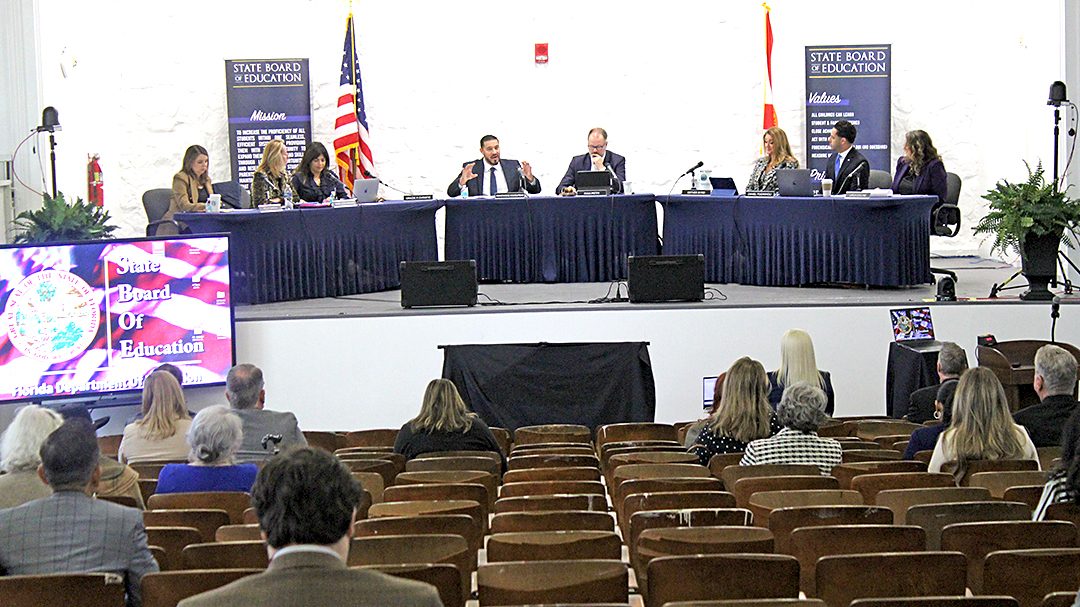 The state Board of Education and Education Commissioner Anastasios Kamoutsas were in Crawfordville last week for the boardโs November meeting, held at the Wakulla district officeโs auditorium.