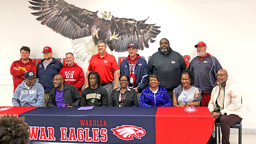 Wakulla War Eagle strong safety Andrew Nelson signed a scholarship on National Signing Day, Wednesday, Feb. 4, with the Missouri S&T Miners, a Division II team in the Great Lakes Valley Conference. Head Coach Scott Klees praised Nelson and the support of his family. Nelson said he chose Missouri S&T because he will get a great education at school and play for a great football team. He is the 106th player from Wakulla under Coach Klees to get a football scholarship.