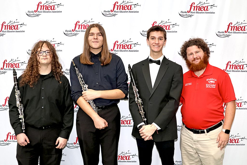 Students Bradley McGuffey, Tate Glass, Jeremiah Dissmore and band director Matthew Spindler were in Tampa last week and the students performed on Saturday at the Tampa Convention Center.