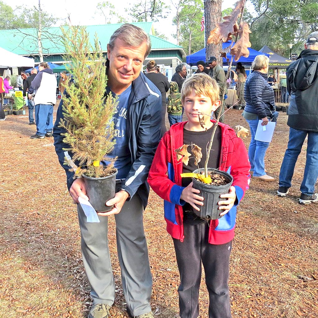 At least 2,000 native trees found homes. With grant funding from the National Wildlife Federation, the Wakulla County Garden Club gave away nearly 900 trees in 1-gallon pots. The Florida Forest Service provided 130 pot-grown trees along with 1,000 pine seedlings. Two Florida Native Plant Society Chapters also contributed trees.